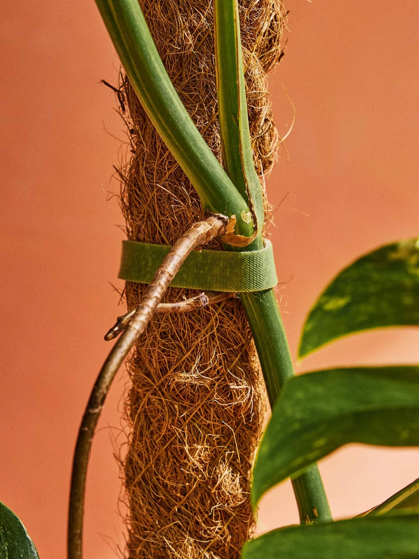 as opposed to using something harsh like twine or wire, these plant ties are a much gentler way of attaching your plants to a moss pole or whatever your heart desires by using a soft material that has some stretch to it so as to not damage the plant as it naturally swells and moves.