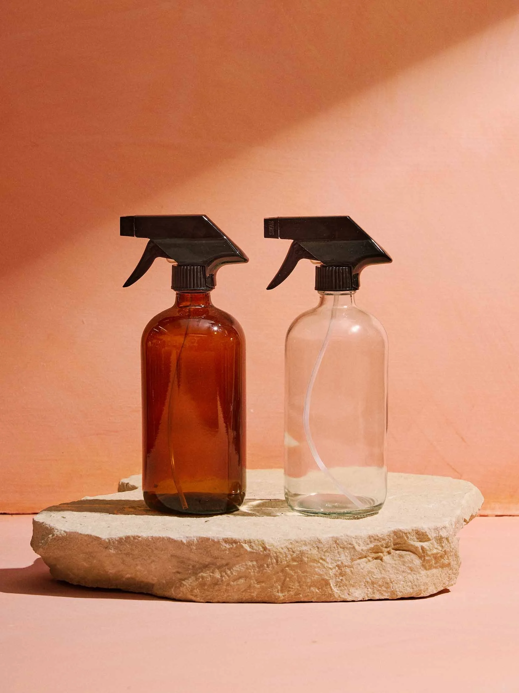 these beautiful recycled glass misters have 3 settings, lock, mist and jet.